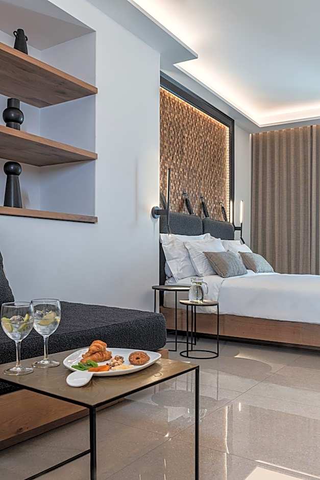 Spacious Suite with two separate bedrooms, the one with one king size bed and the other with two single beds and one bathroom. It offers street or pool view, upon availability.